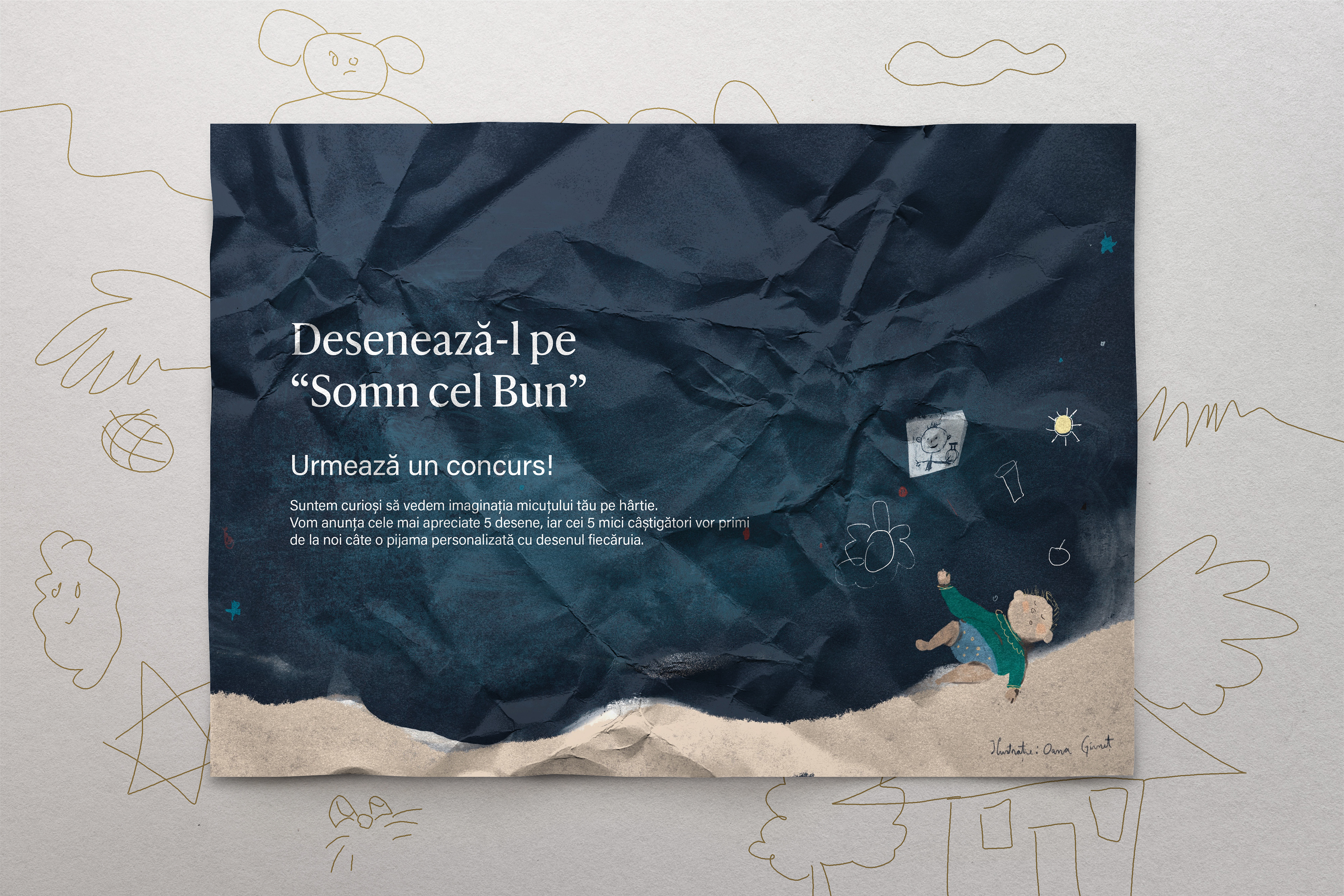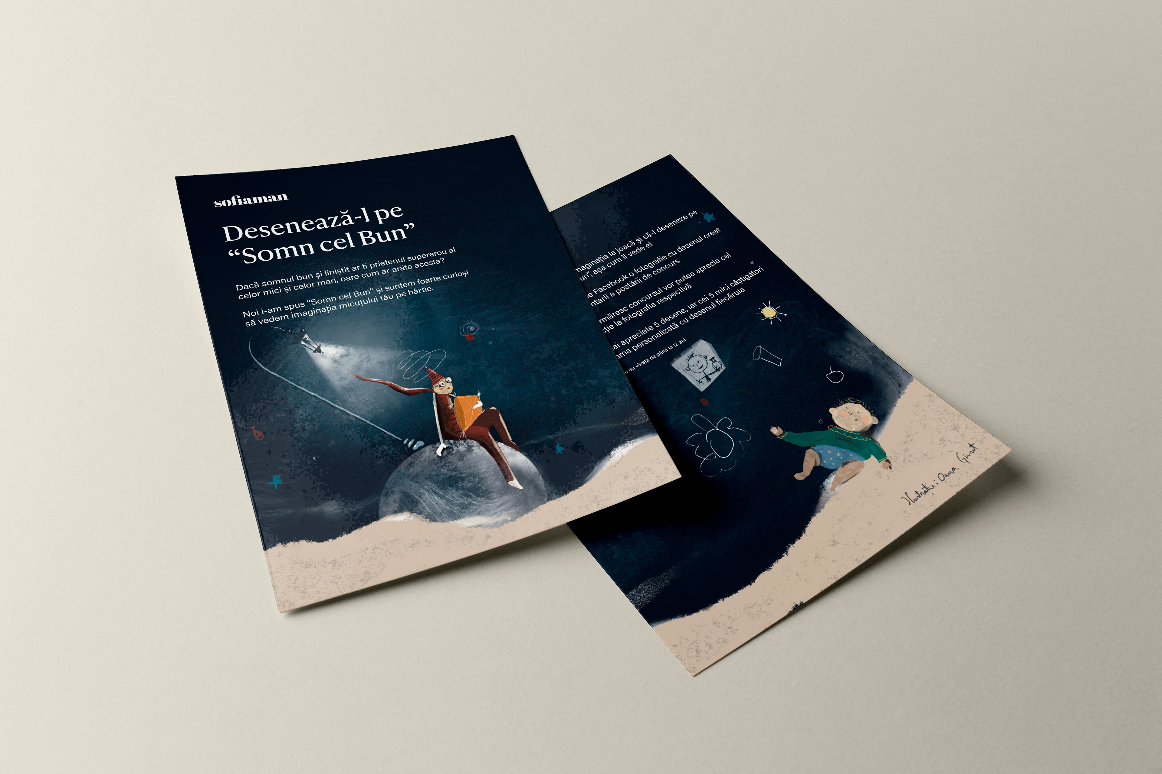 Design and illustration for the "Sleep well" campaign, dedicated to children, organized by Sofiaman.